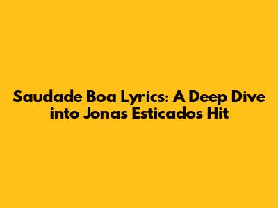 Saudade Boa Lyrics: Unpacking Jonas Esticado's Hit